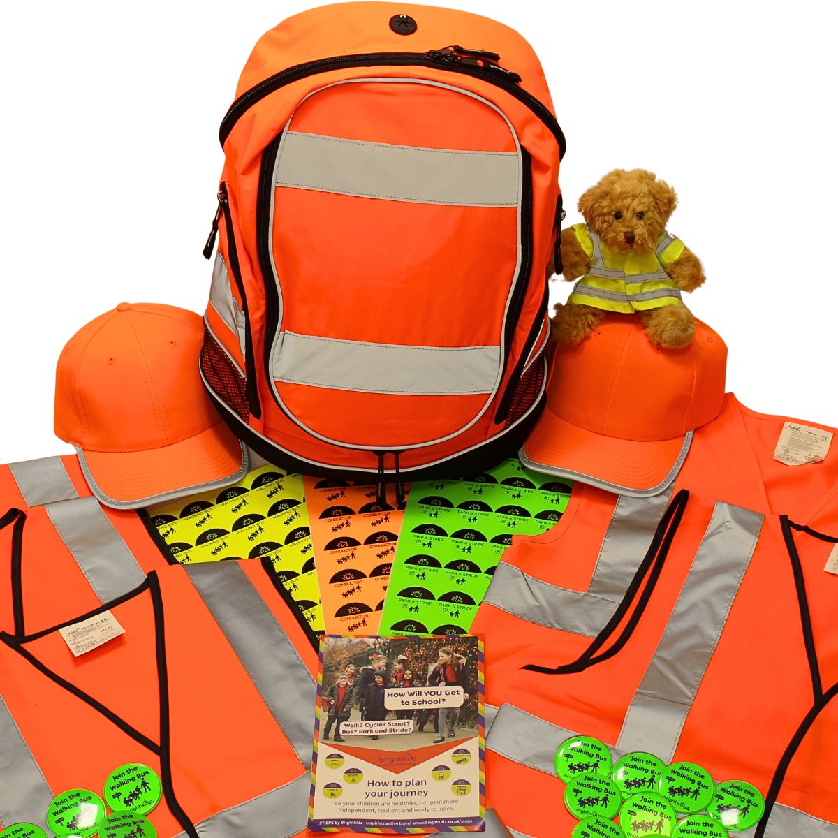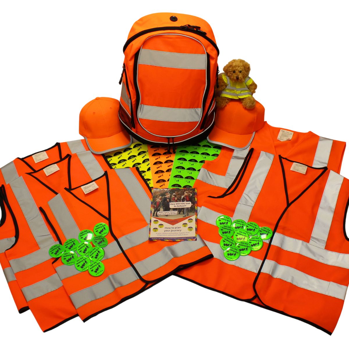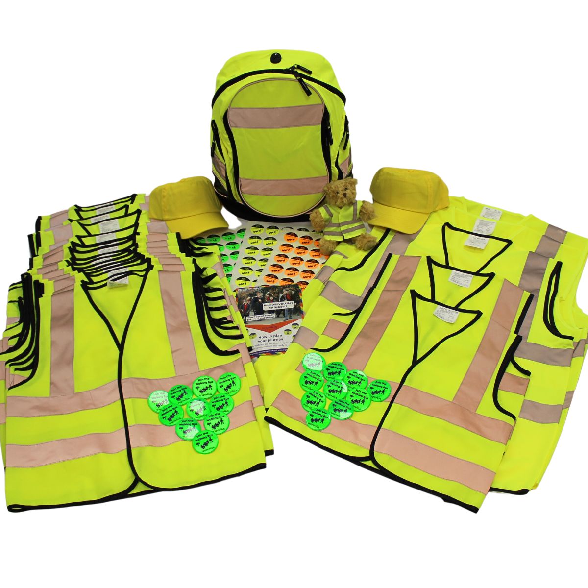 This pack is perfect if you want to start a Walking Bus. It is suitable for up to 20 children and four adult helpers. An easy solution and great value. The waistcoats in this pack can also be printed with your school and/or sponsor’s logo for an additional charge – please contact us for details.