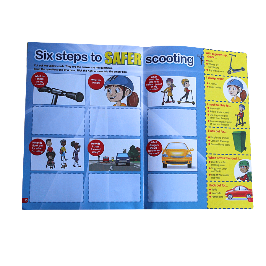 Perfect accompaniment to scooter training or scooter club activities. This fun, engaging activity book covers key messages for scooter safety.
