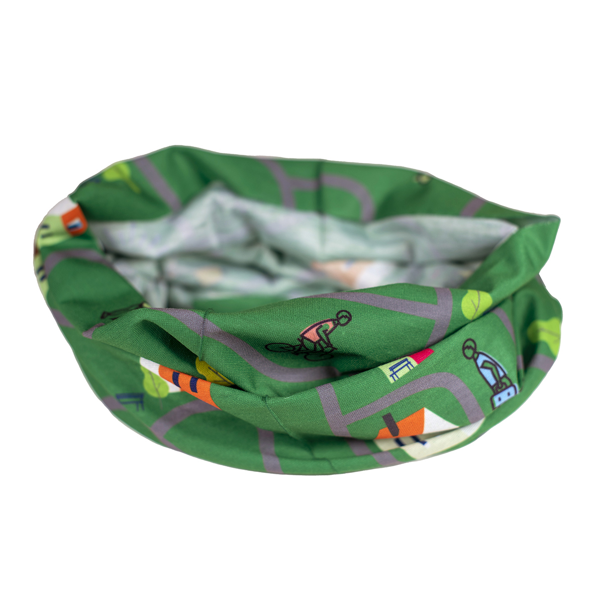 It’s much more than a neck warmer as it can serve as a face mask too so it’s good for all seasons. How you wear it is up to you – as a scarf, hat, hair band or wrist band. You can fold it, wrap it or twist it. Use for walking, cycling, scooting or any outdoor activity. Perfect, low cost, practical incentive for your active travel campaigns.