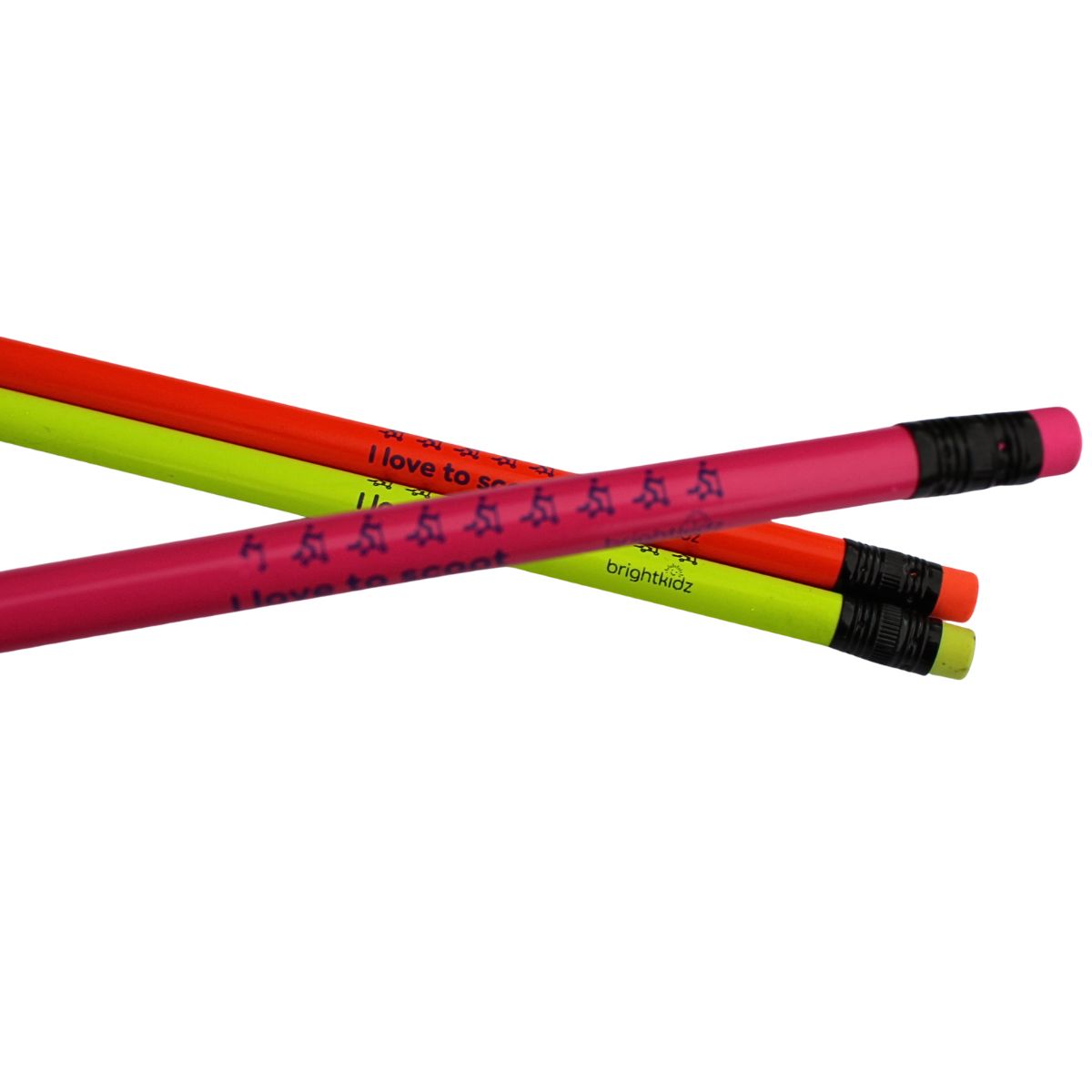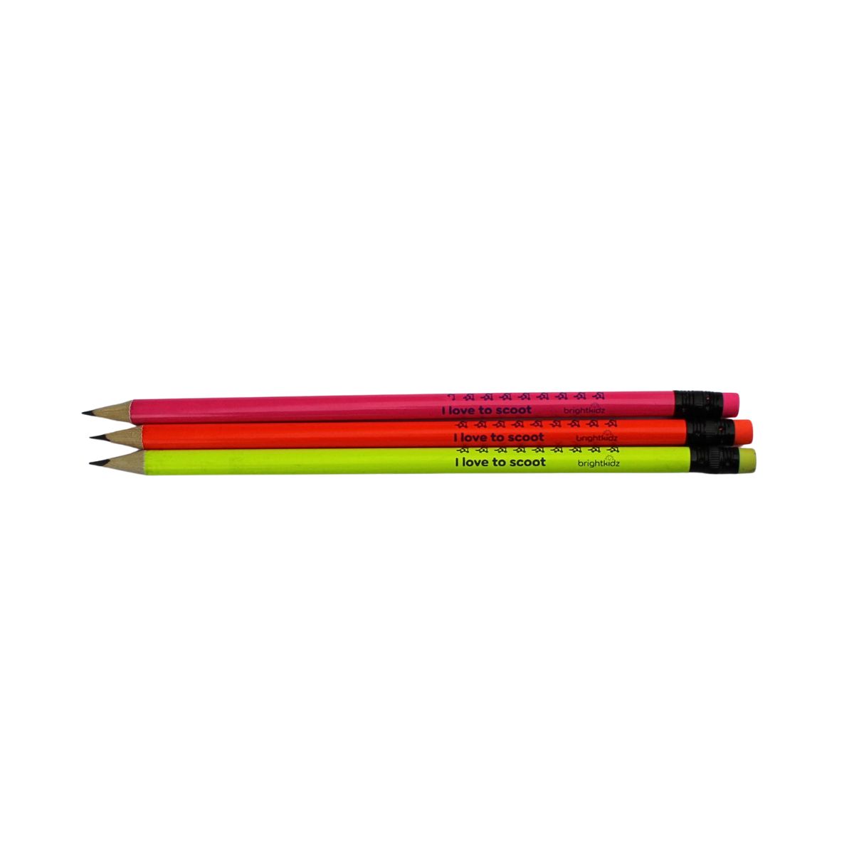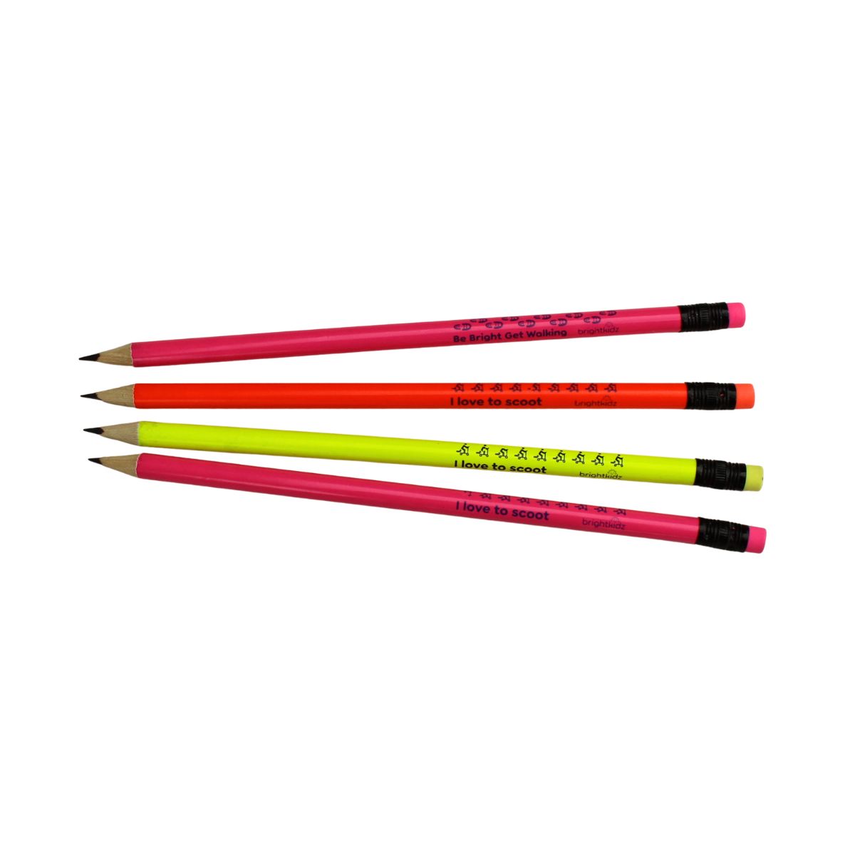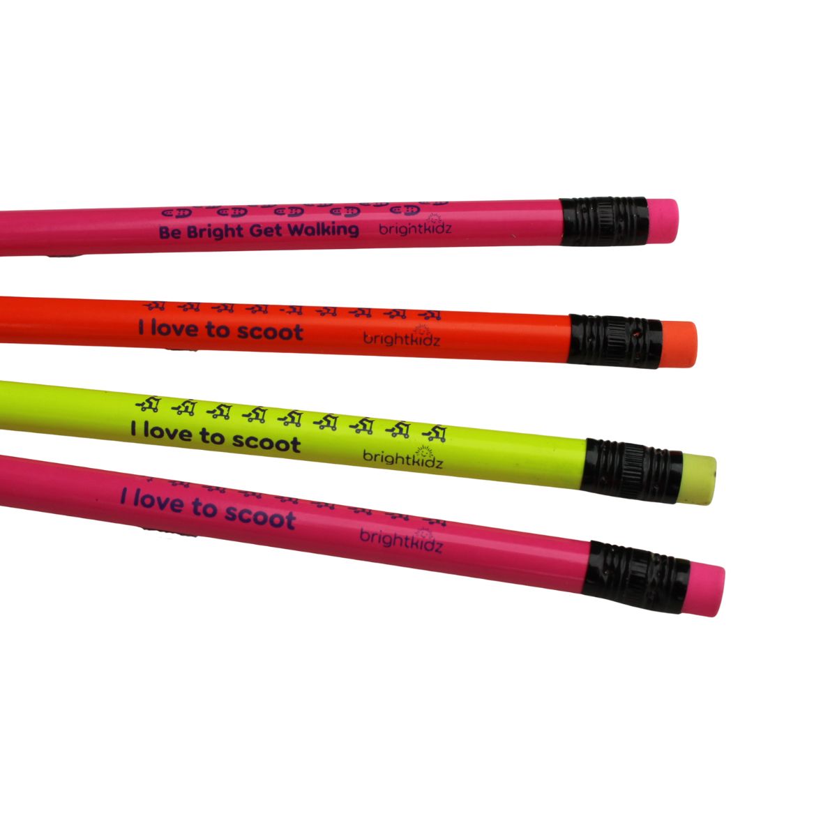 High quality pencil with bright coating and choice of ‘I love to scoot’ or ‘Be Bright Get Walking’.