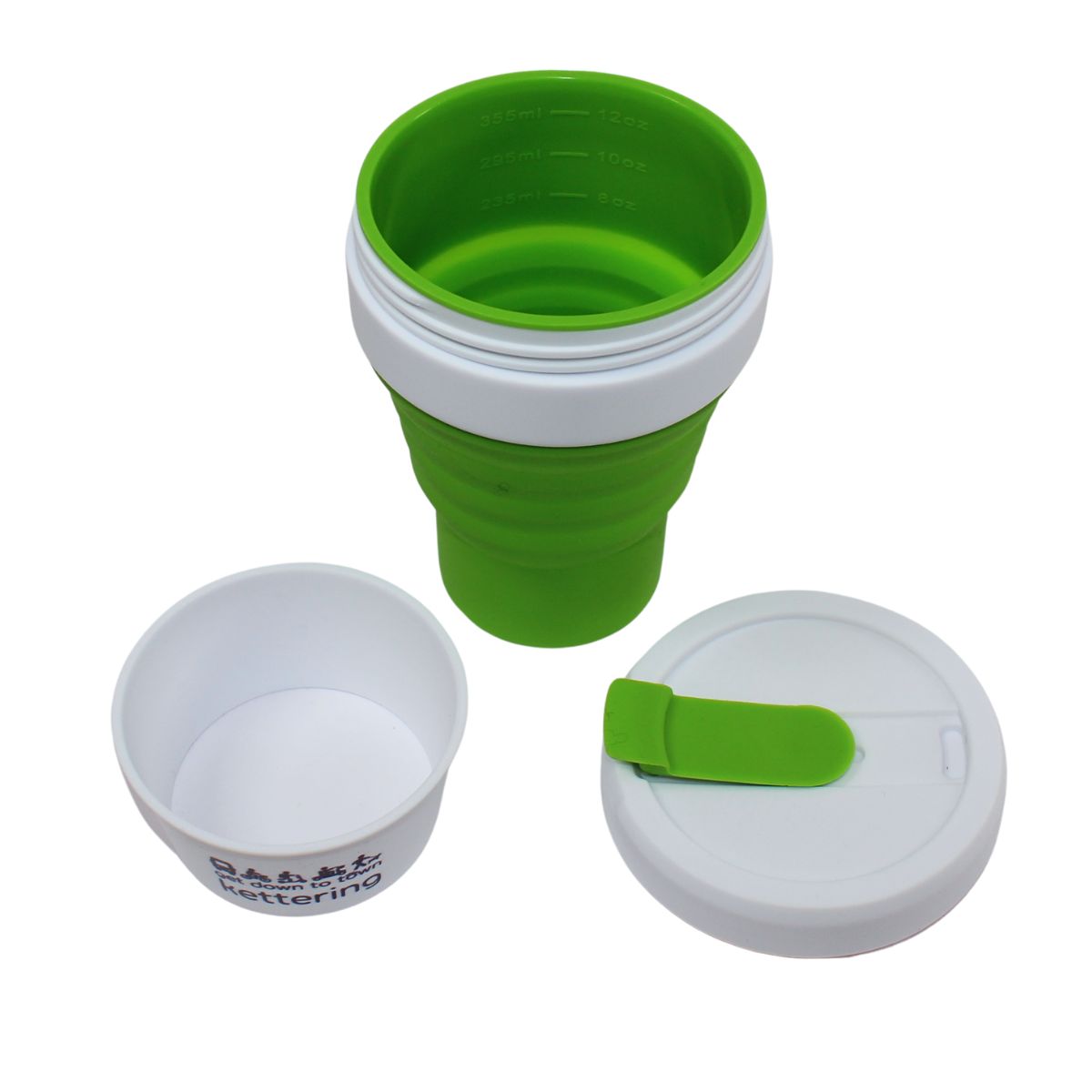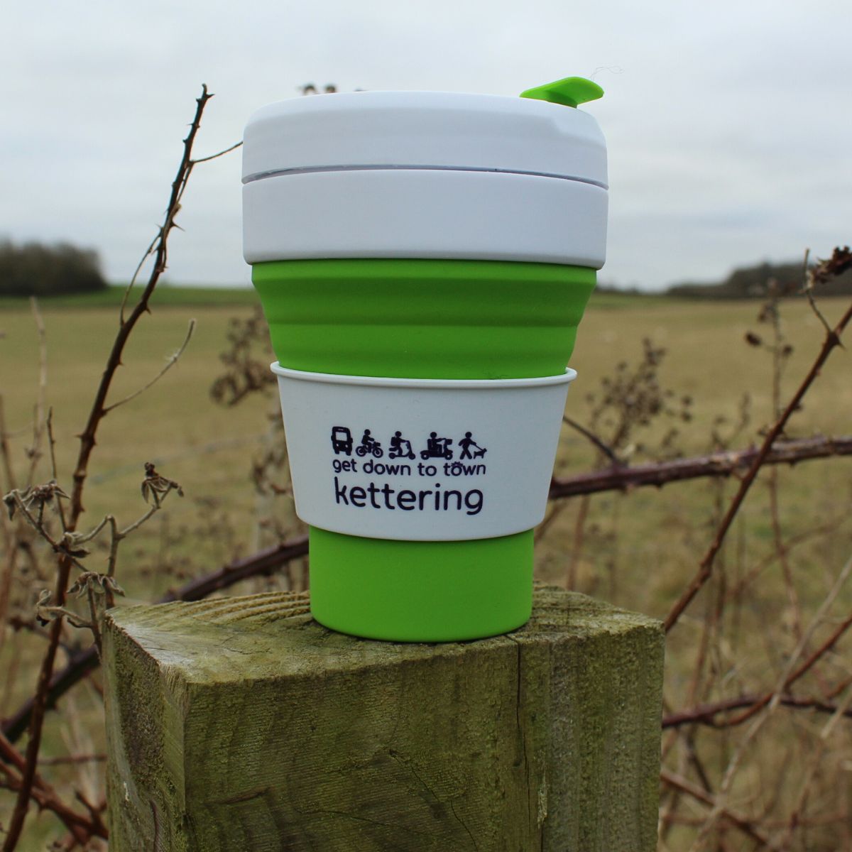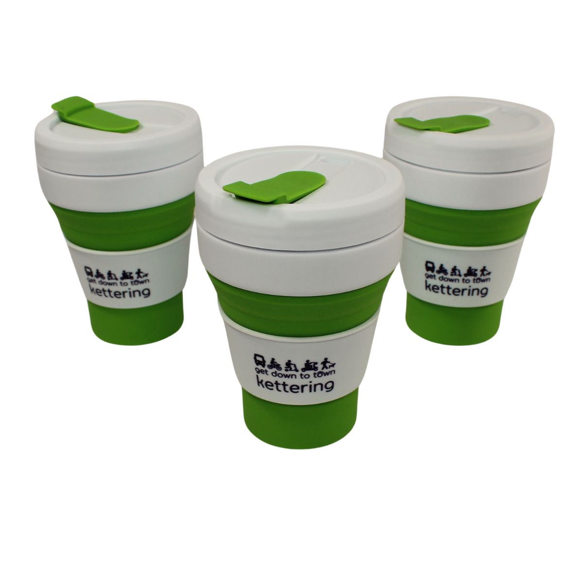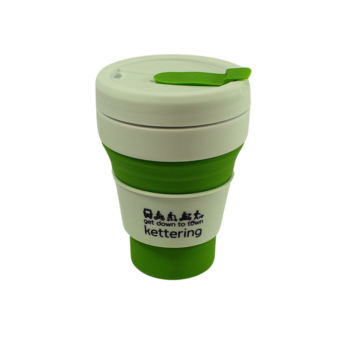 Reusable, collapsible cup perfect for promoting your organisation or campaign with your own design printed on the front of the grip/heat sleeve. Excellent for anyone who gets out and about a lot and wants an easy-to-carry reusable cup. Ideal gift or incentive for cyclists, walkers or commuters.