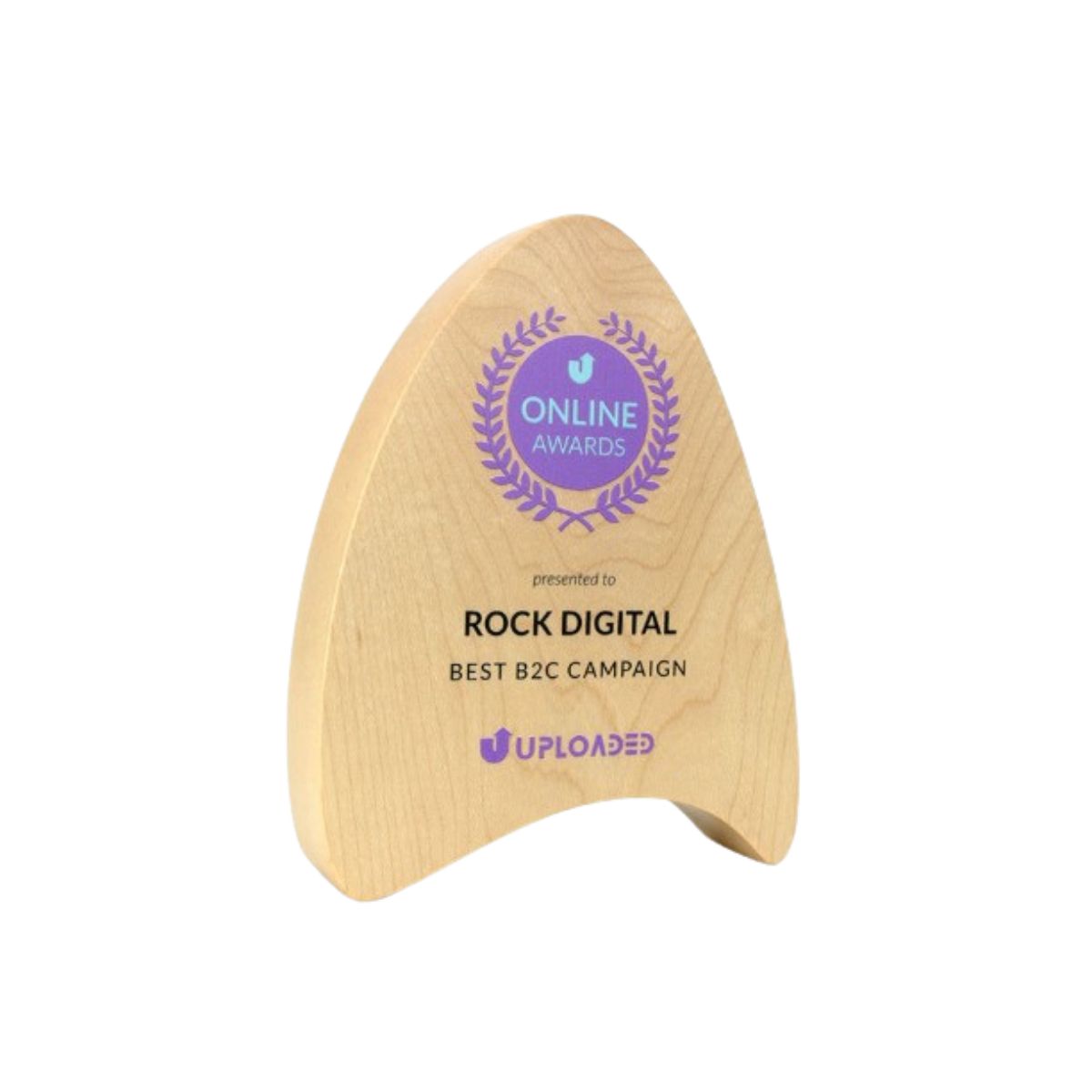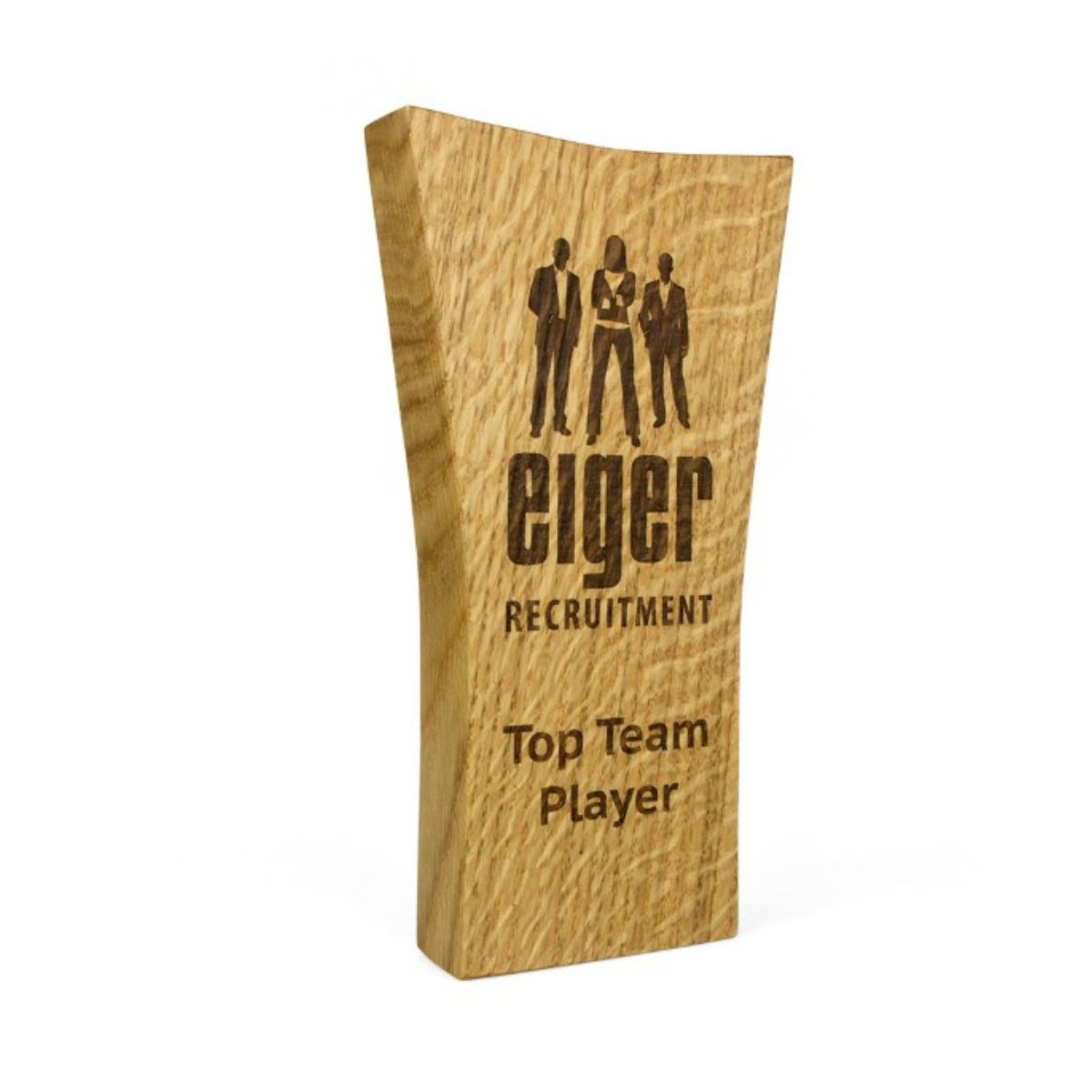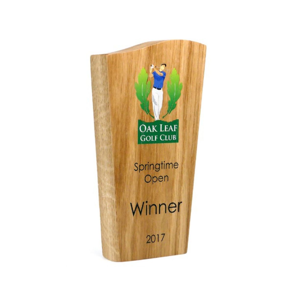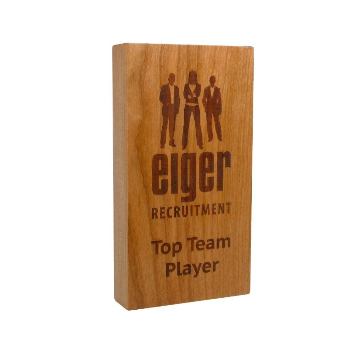 28mm thick solid real wood block awards Laser engraved or full colour print to the front surface only.