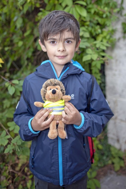 Remember the hedgehogs in road safety campaigns? Hedgehogs have been a popular in road safety education for many years here in the UK. This hedgehog knows how to stay bright on the roads with a high vis jacket.