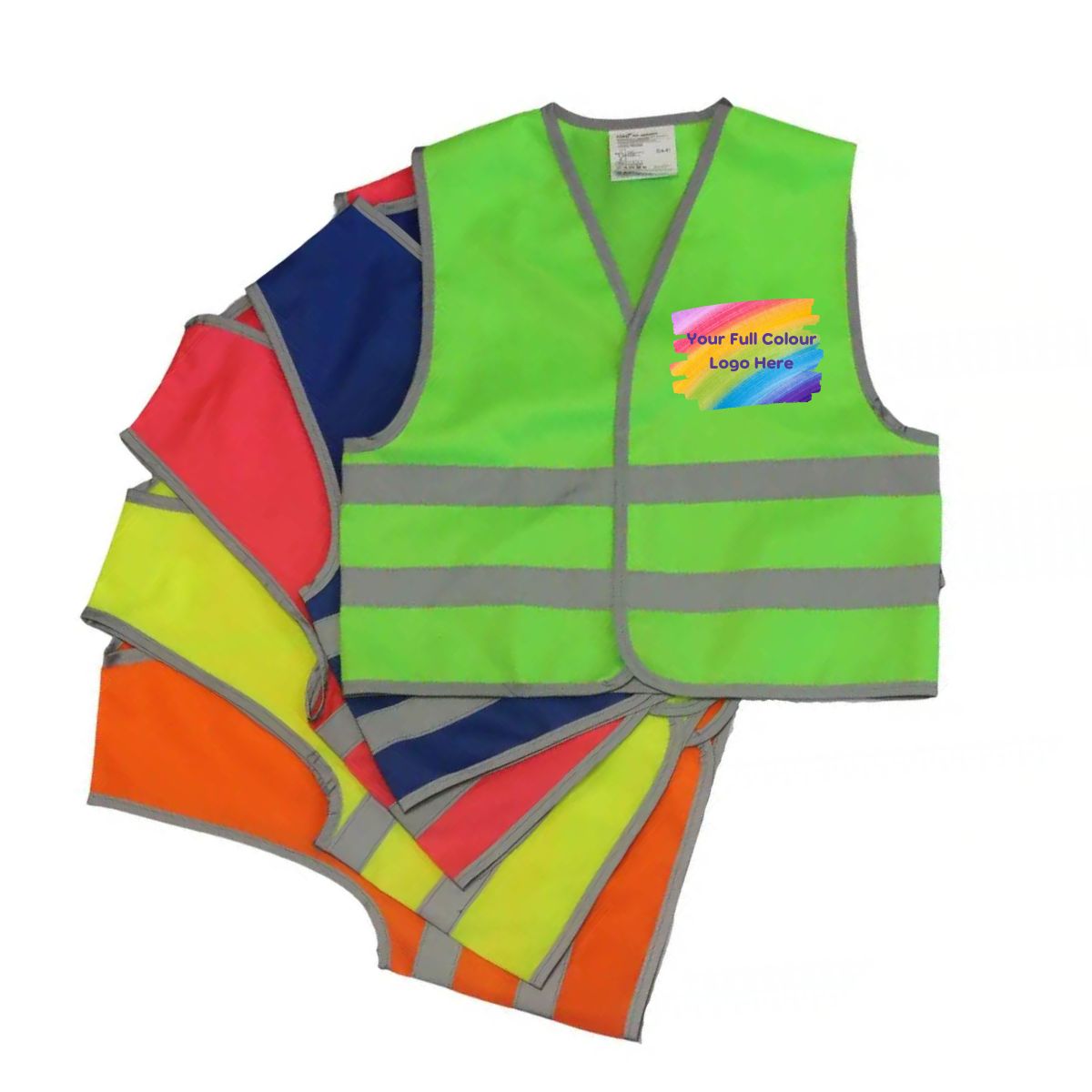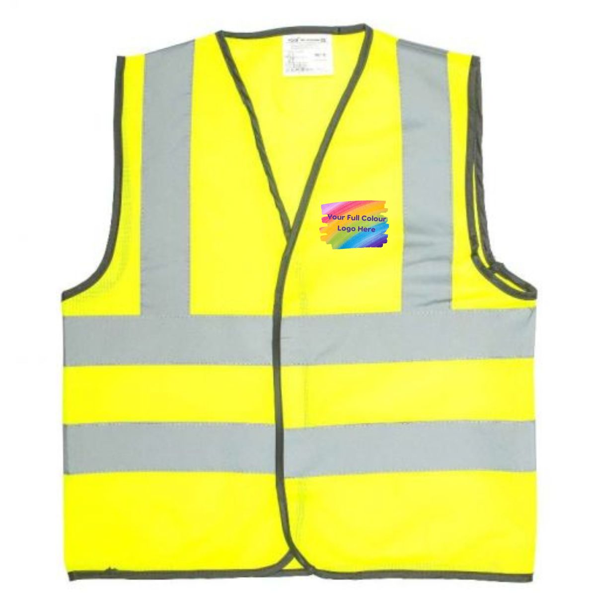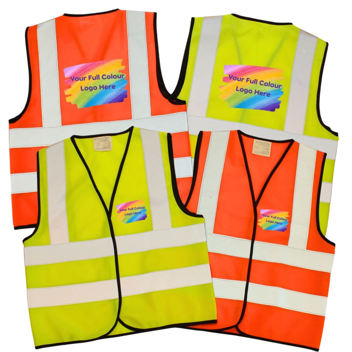 Help your children to be bright and seen – for road safety or for easier monitoring when out and about as a group. High vis at low cost. And for a super smart look this includes your full colour design printed front and back… great for group identification.