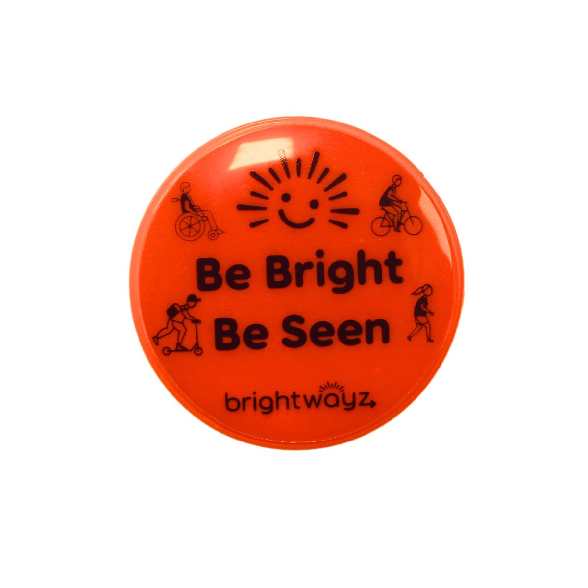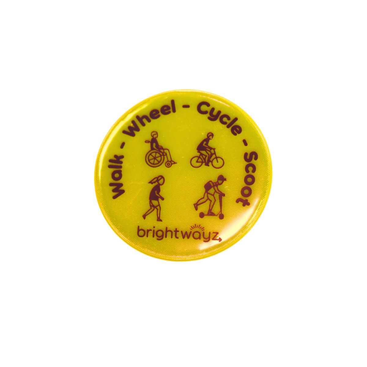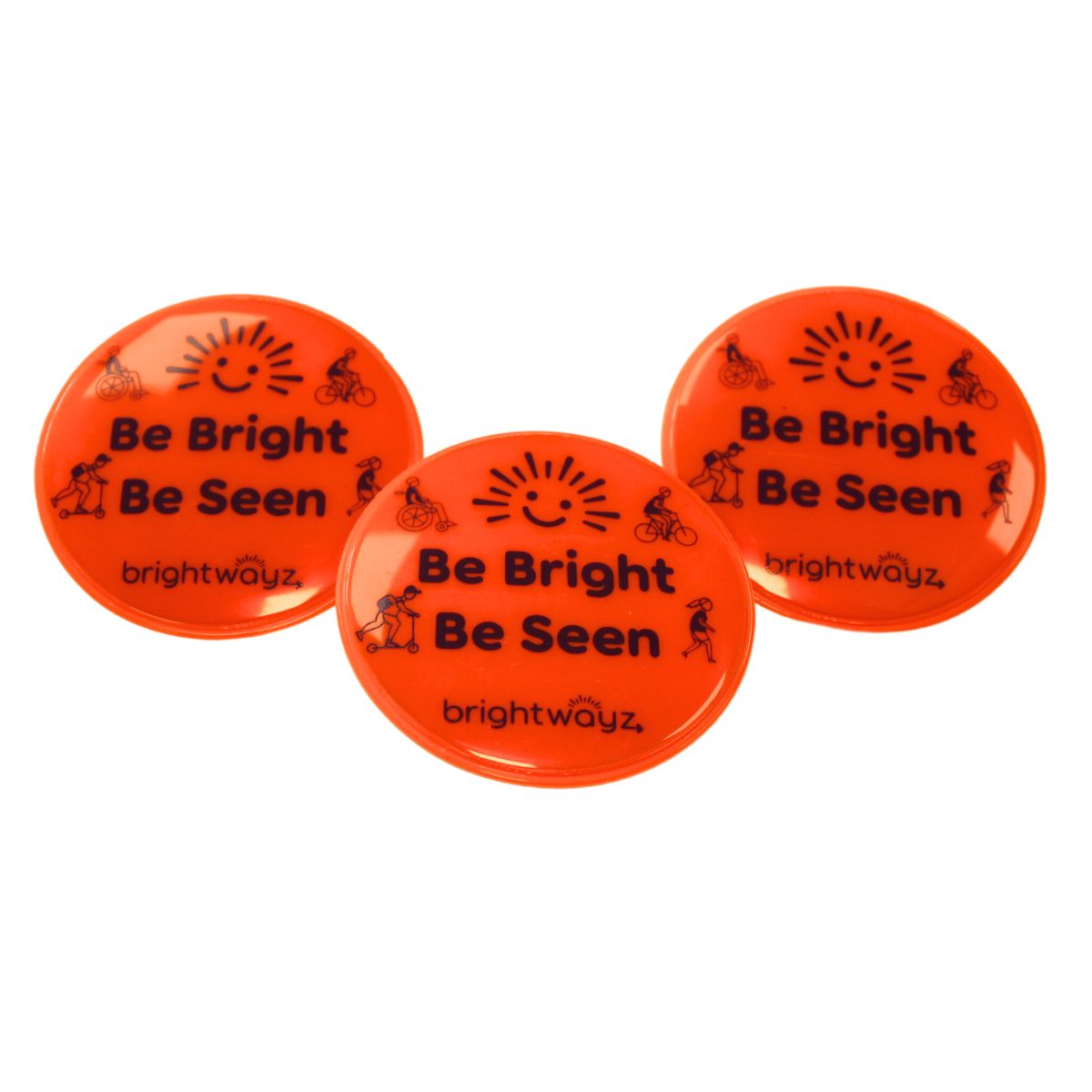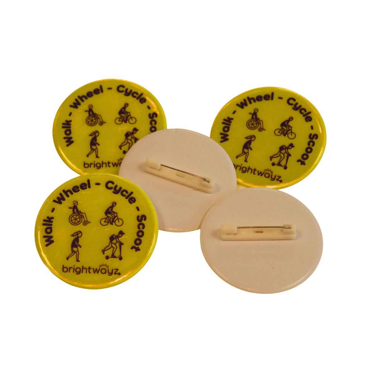 Pin to bags or clothing. Fun and bright, they show up day or night. Great for promoting active travel for children.