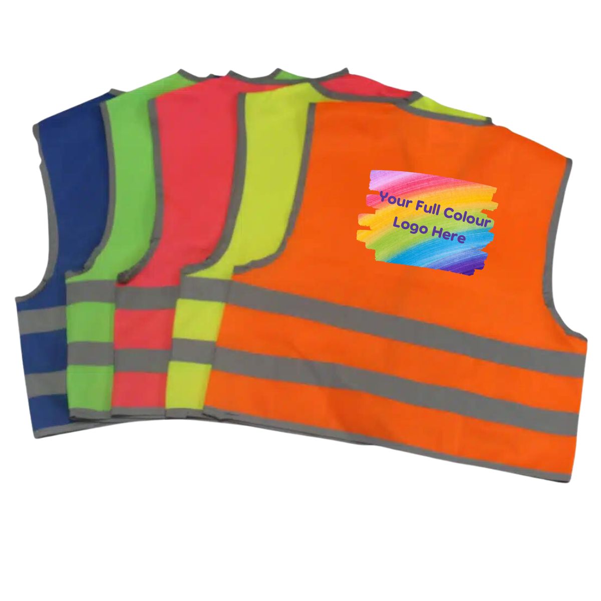- Print position: Back of waistcoat in one position (above reflective bands).