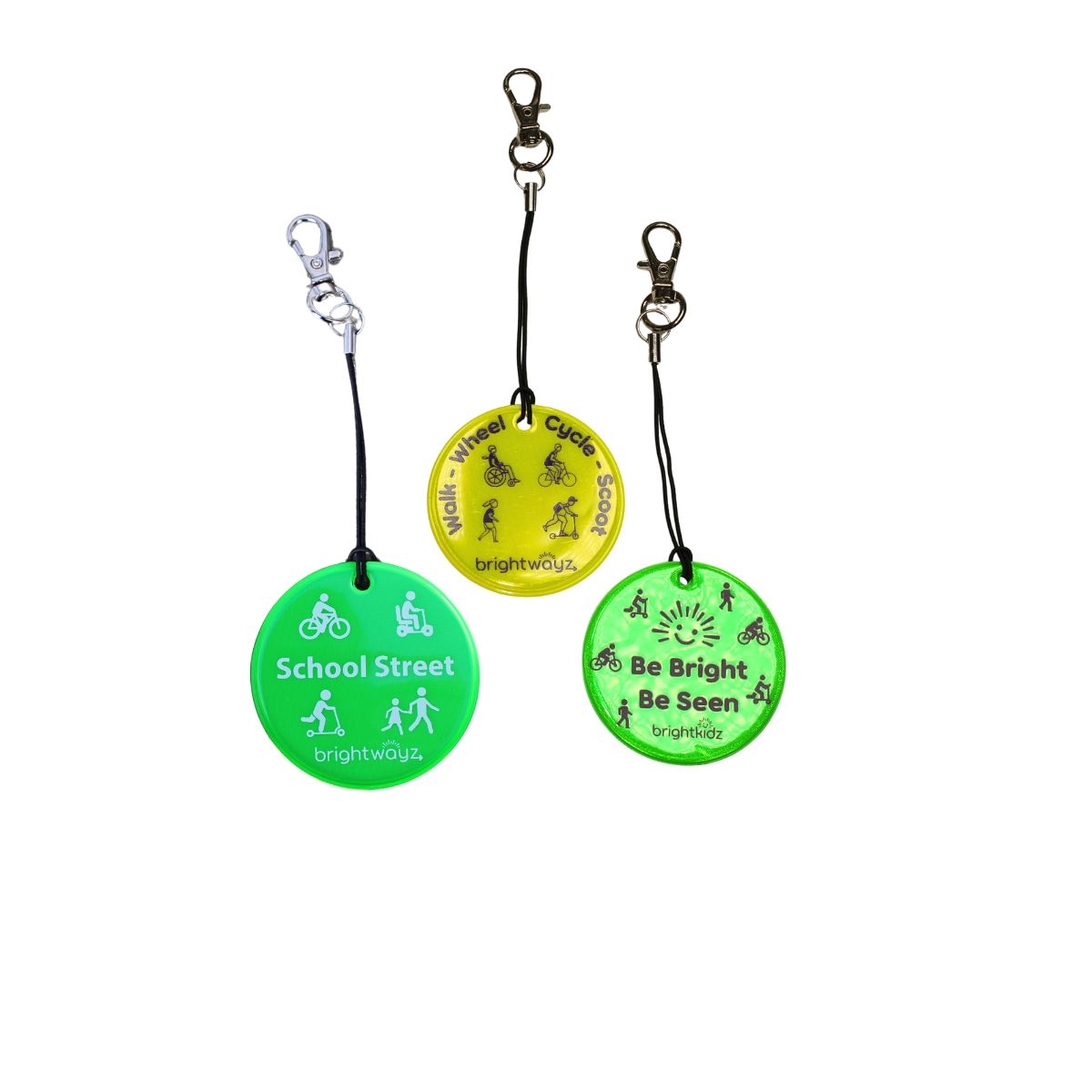 A great incentive or reward… with a practical use. Our circle reflective clip-ons are available in a range of fluorescent colours and designs to help you to be seen day, dusk and night. They come ready-printed in a choice of designs to support road safety or active travel initiatives.