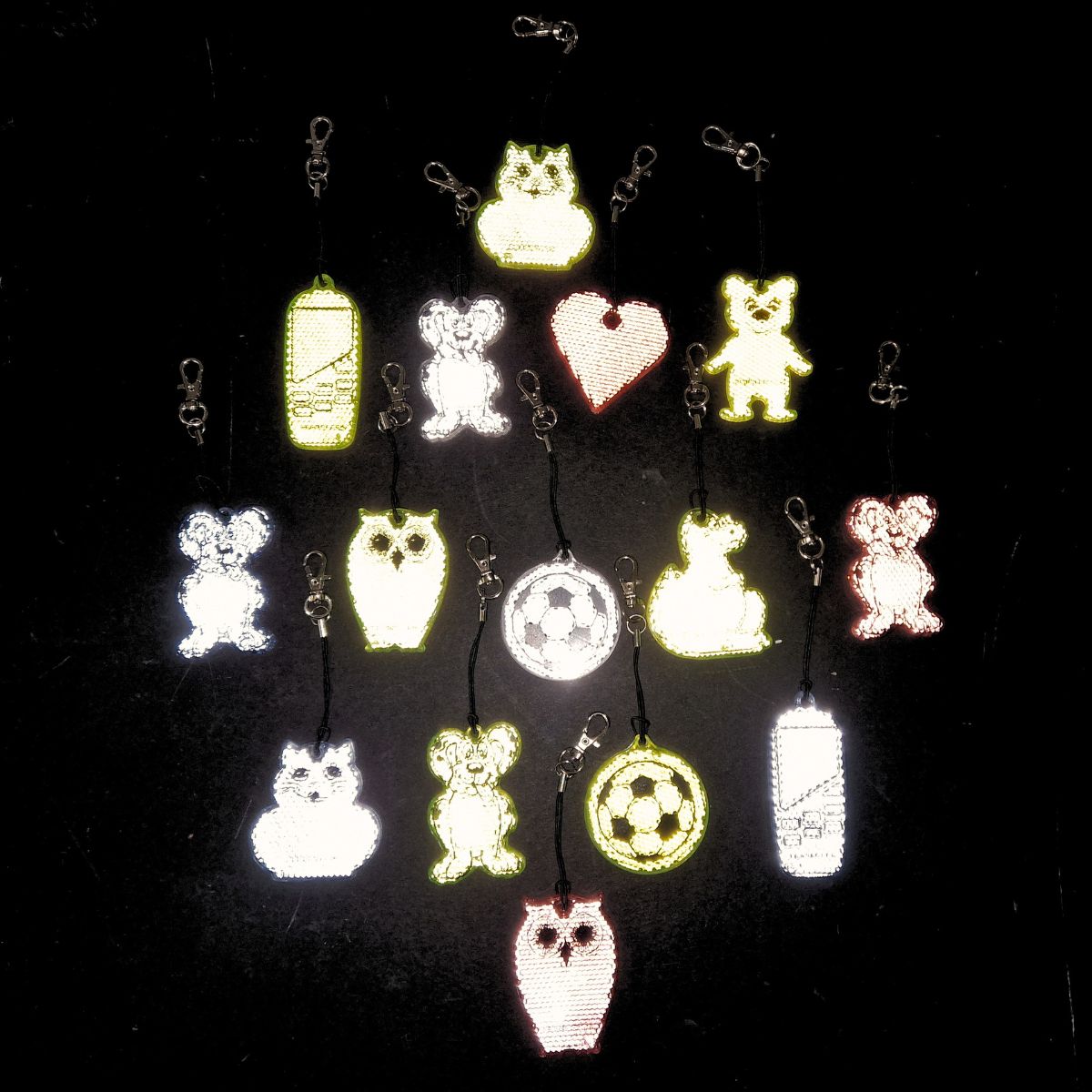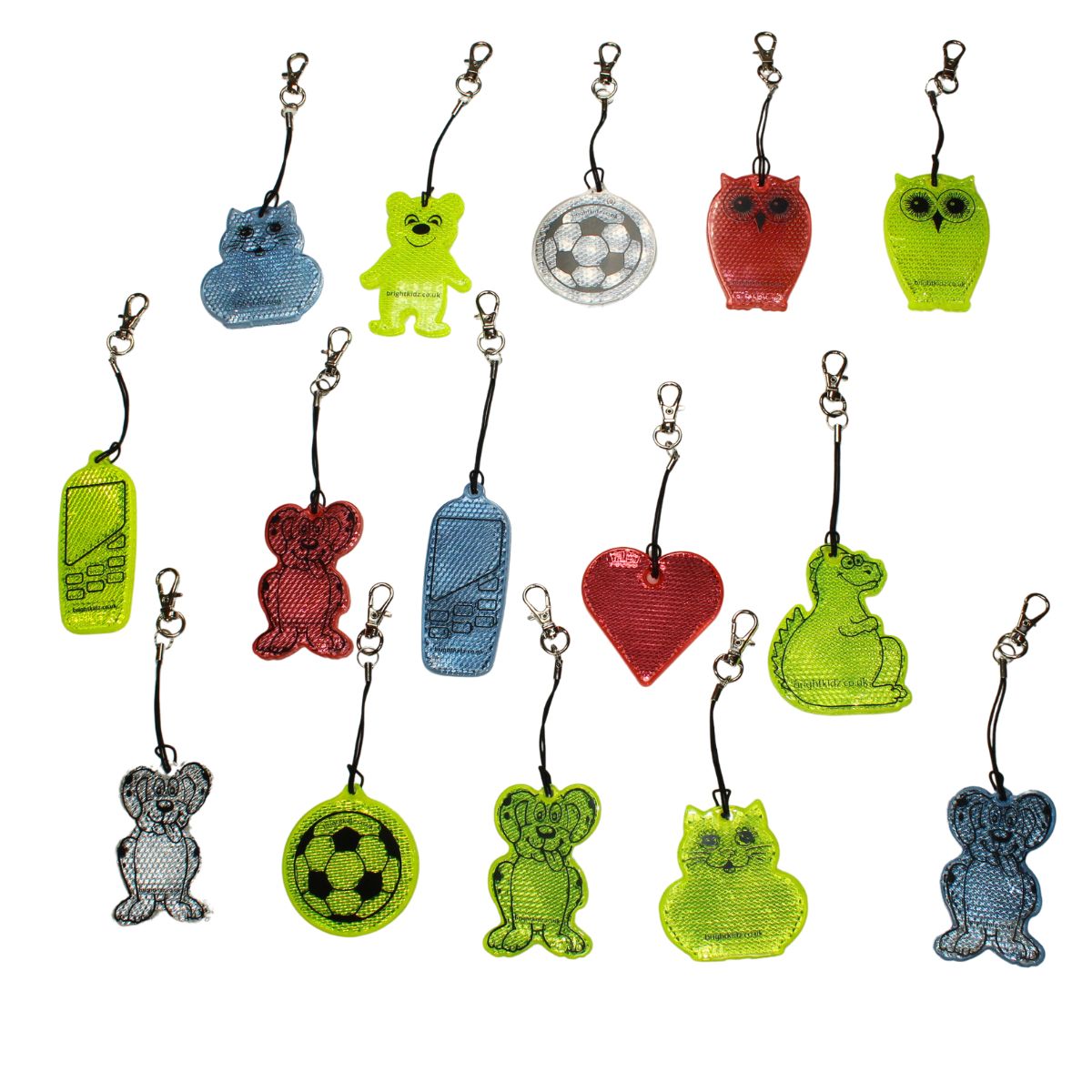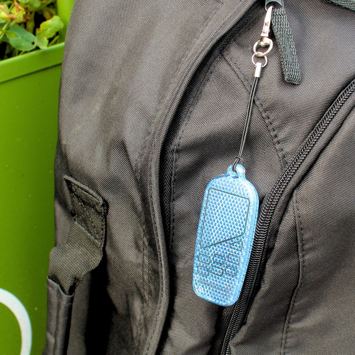 Be bright after dark with one of these fun reflectors and clip it to your bag. Available in a range of colours – all show up at night in car headlights.