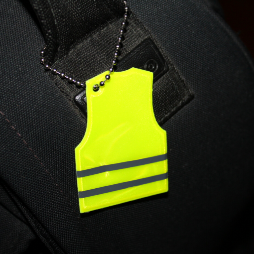 These fun yellow vest-shape reflectors are great for road safety. Attach it to a bag or coat when you are out at night.