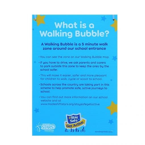 - This product is suitable for schools in England outside London taking part in the Walking Bubble scheme, and features the Modeshift STARS logo and web address.