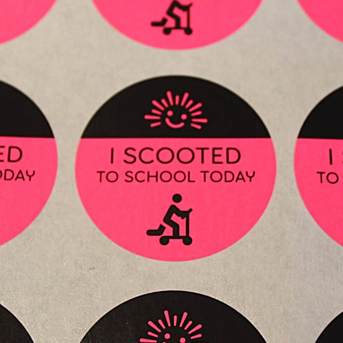 - Mix of designs (4 x ‘walk’, 3 x ‘walk,wheel,cycle,scoot’, 3 x ‘be seen’, 3 x ‘cycle’, ‘2 x ‘scoot’)