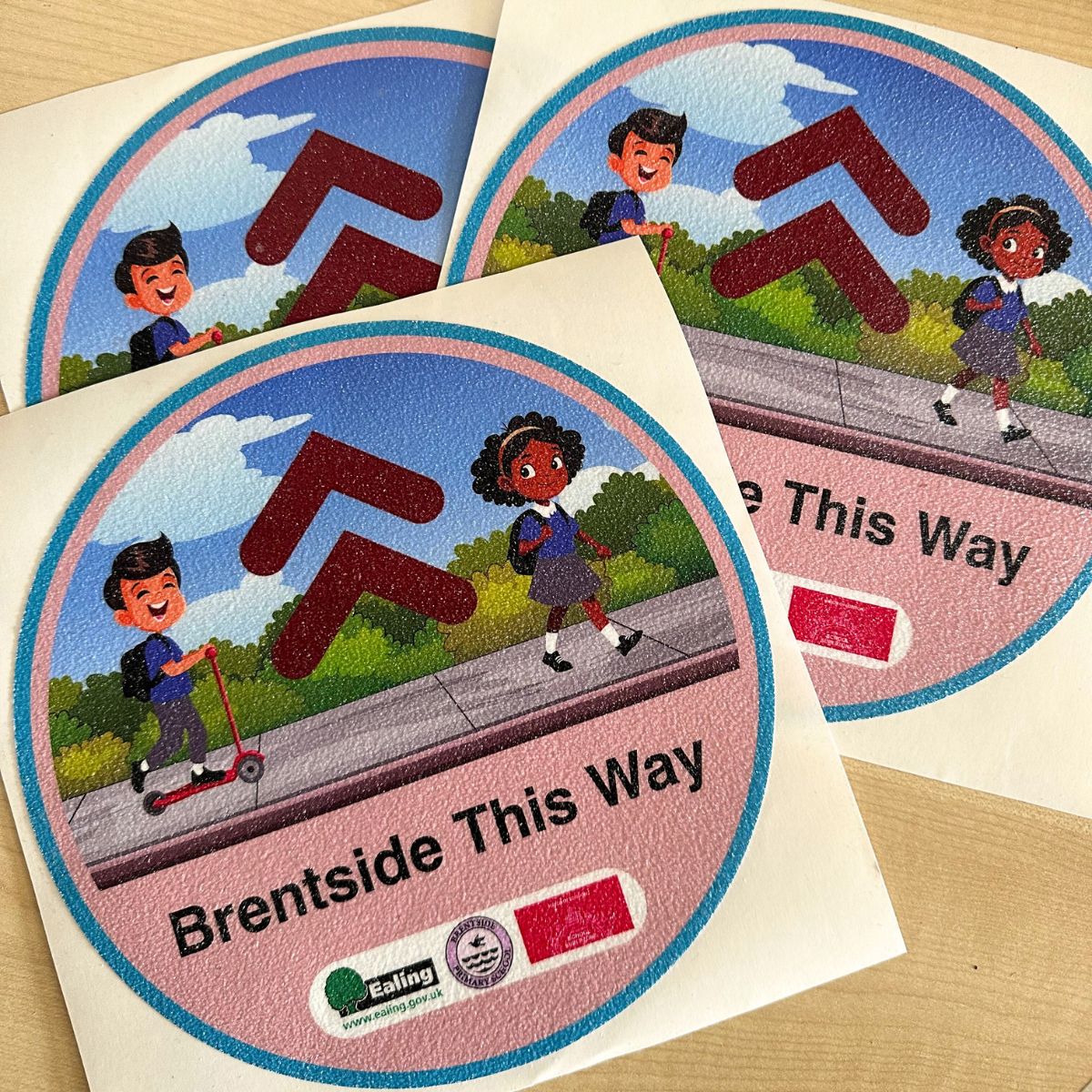 Promote active travel to local destinations with engaging messages or information on time it takes or directions with our full colour custom printed pavement stickers.