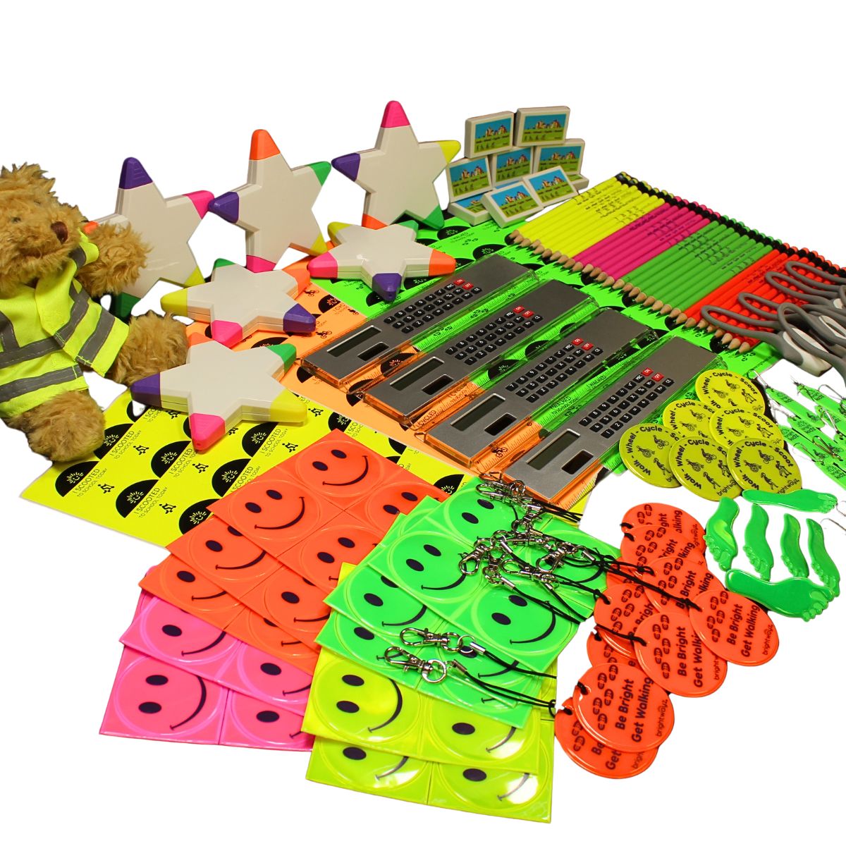 - Pack includes a range of our fluorescent, reflective products for day, dusk and night time visibility at pocket-money prices in some of our most popular styles.