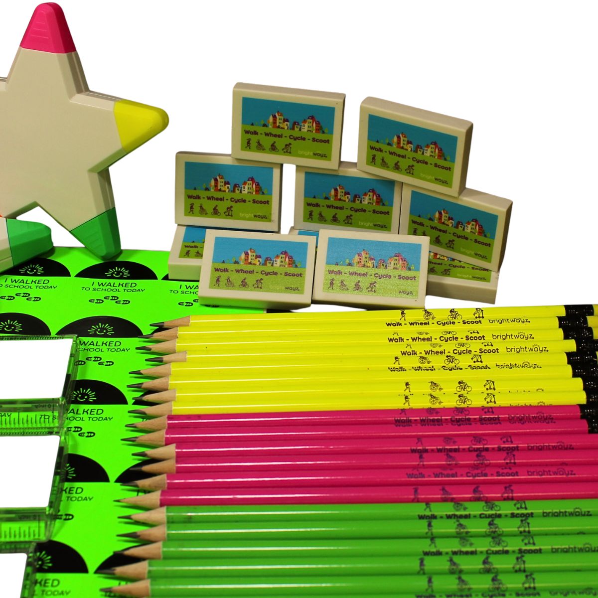 - 30 pencils (walk, wheel, cycle, scoot design).