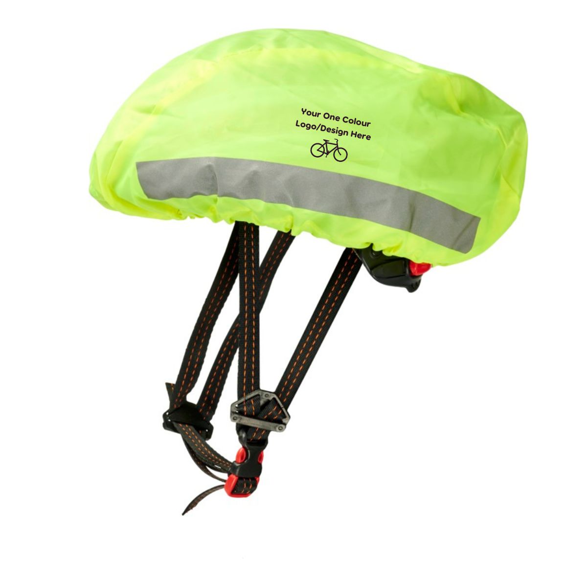 Useful and eye-catching cycle helmet cover which helps other road users to see you when cycling, especially in gloomy weather or at night. These are customised with your logo or campaign message.