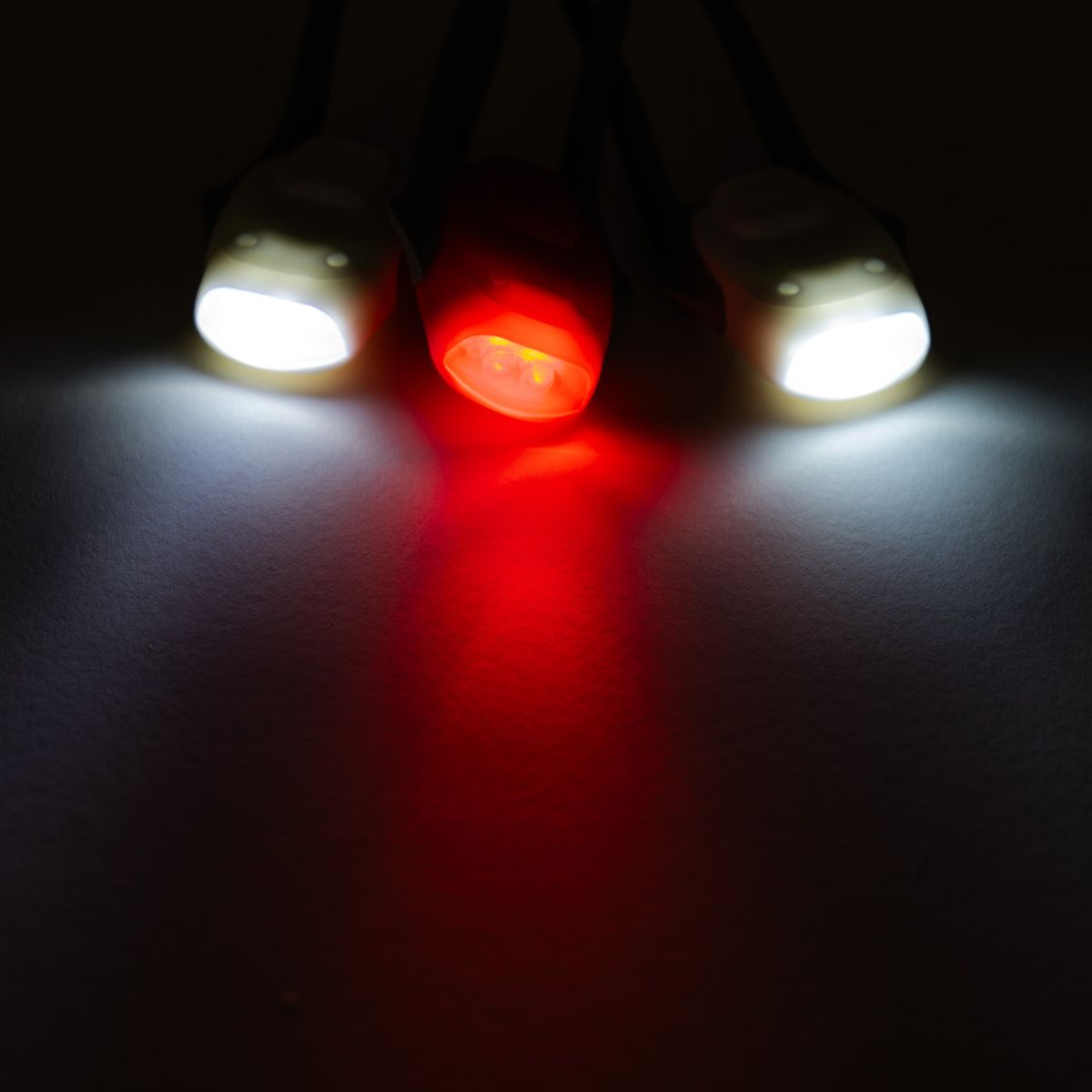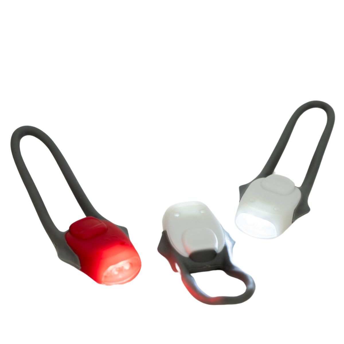 - Choice of two colours: red or white. Red has red/grey outer and red light for rear. White has white/grey outer and white light for front.