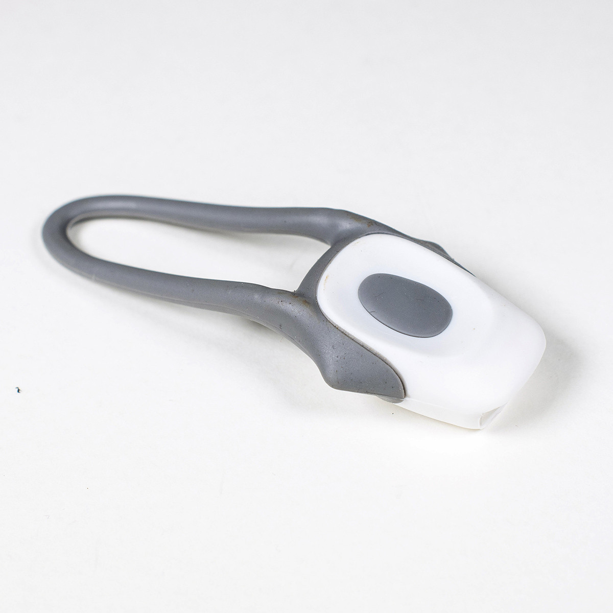 - Attach by stretching strap around bag strap etc and pulling light through end loop to secure.